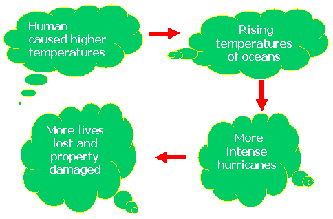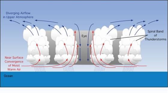 Hurricanes A hurricane begins as a tropical atmospheric disturbance that may develop into a violent, cyclonic storm with high winds and heavy rain. Human-caused global warming is raising the temperature of the world’s oceans and increasing their evaporation. These two impacts intensify the strength of hurricanes. Even small increases in the warmth of the ocean can lead to more severe hurricanes. This can increase the existing storm’s power and add to its rainfall. The